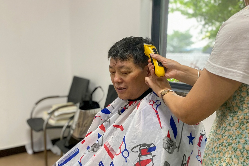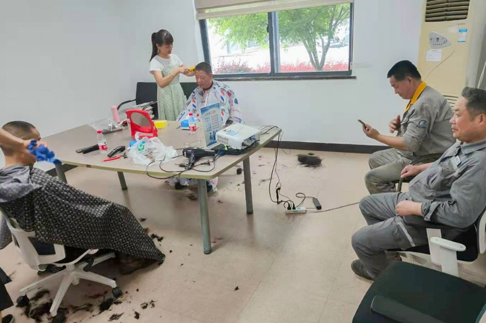 6月18日中午,公司邀請(qǐng)的兩位理發(fā)師來到了活動(dòng)地點(diǎn),貼心地詢問這些父親們對(duì)自己發(fā)型的要求,憑借嫻熟的技藝,為他們修剪出了滿意的發(fā)型。沒有花哨時(shí)尚的造型,理發(fā)師卻“剪”出了大家的笑容,同時(shí)也“剪”出了中達(dá)新材對(duì)員工們深切的關(guān)愛。