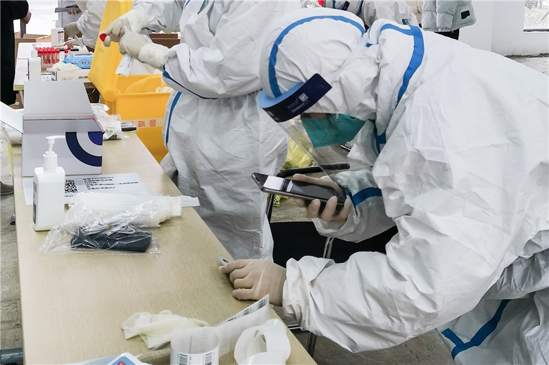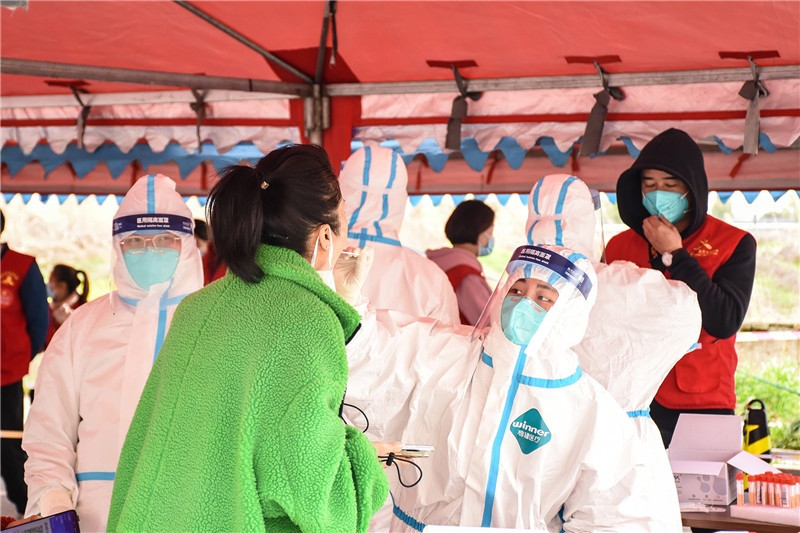 志愿者們在核酸檢測現(xiàn)場進行秩序引導(dǎo)、協(xié)助登記等協(xié)助工作。有的為不會使用微信小程序掃碼登記的居民提供指導(dǎo)幫助,有的配合醫(yī)生護士做好掃碼人員登記,有的協(xié)助特殊人群采樣等等。一米線、隔離帶、測體溫、查雙碼、信息登記,從入口到出口志愿者們幫助居民安排得井然有序,保證了各卡點檢測工作高效進行。志愿者表示,“雖然我不是醫(yī)生、護士,但我應(yīng)該盡自己的綿薄之力,和大家一起打贏這場疫情防控戰(zhàn)!”受倒春寒降溫影響,這天寒風(fēng)刺骨,但是志愿者無一退縮。