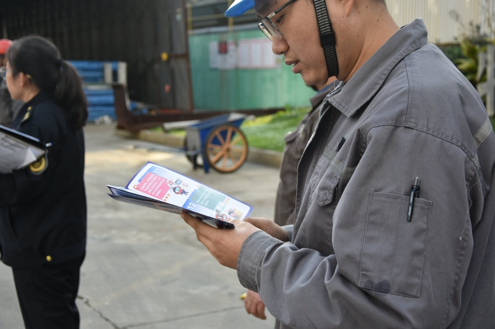 消防員首先向員工分發(fā)了消防知識(shí)宣傳手冊(cè),并為大家詳細(xì)講解應(yīng)急逃生知識(shí)并示范了滅火器與消防水帶的正確使用方法。